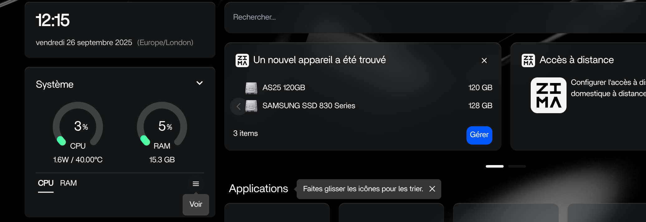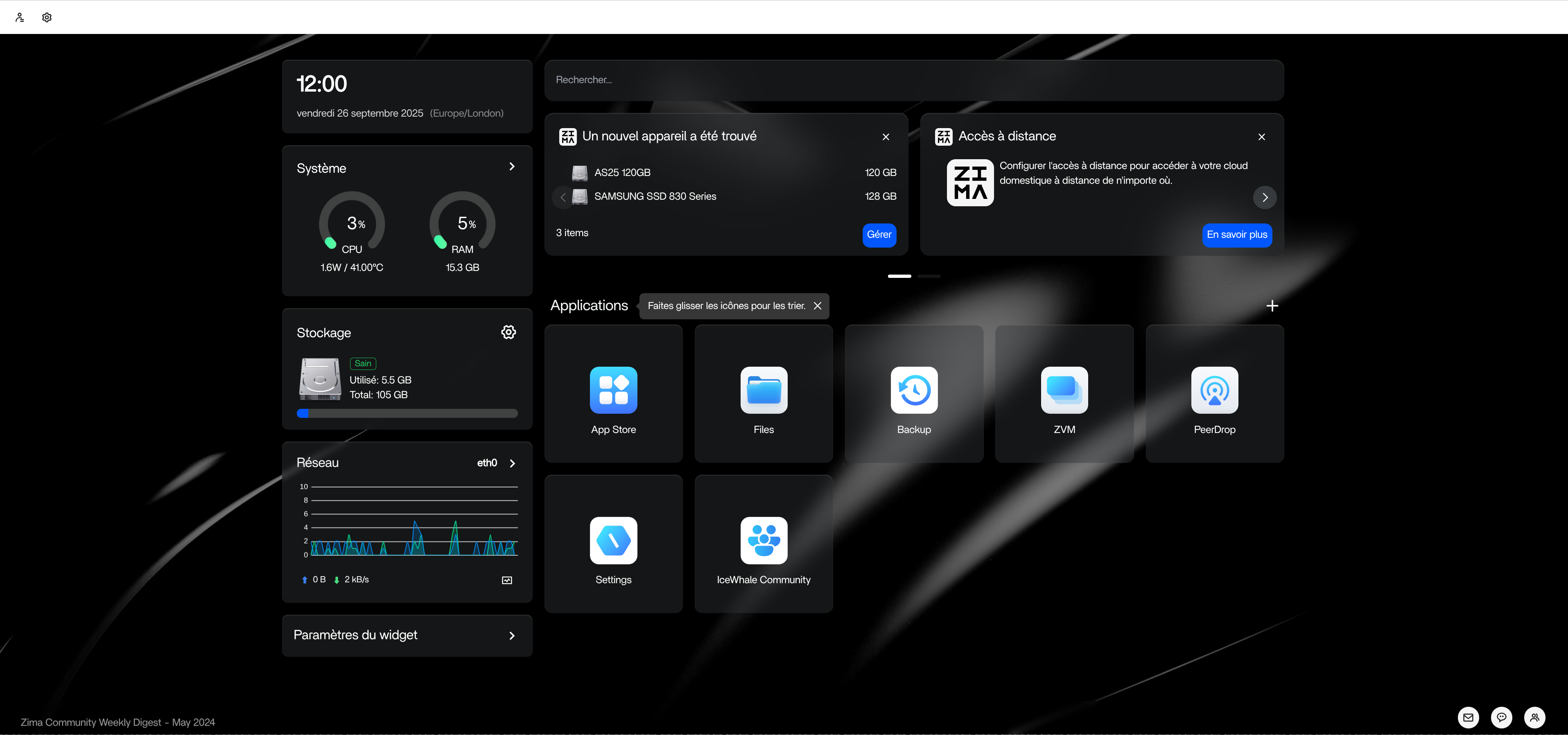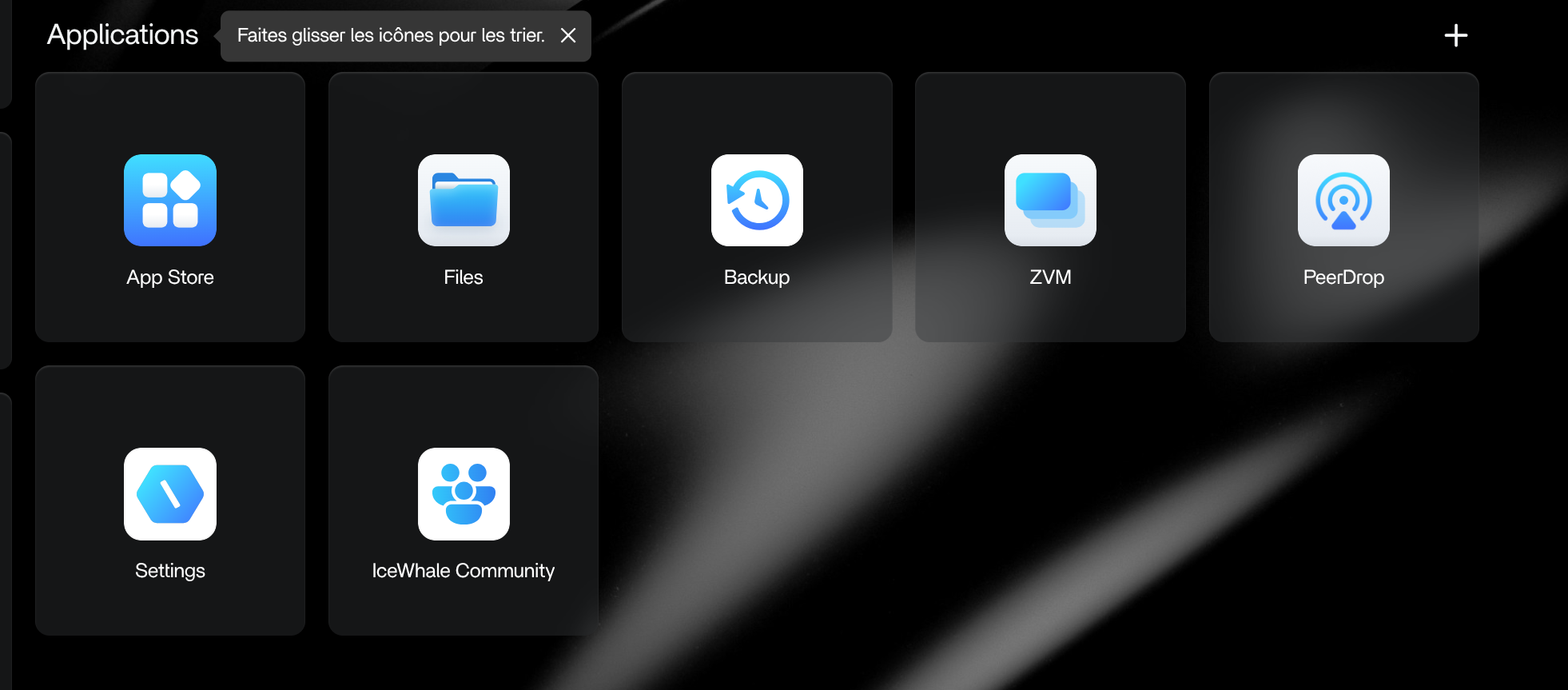 Vue d'ensemble de l'interface de ZimaOS dès la première ouverture
