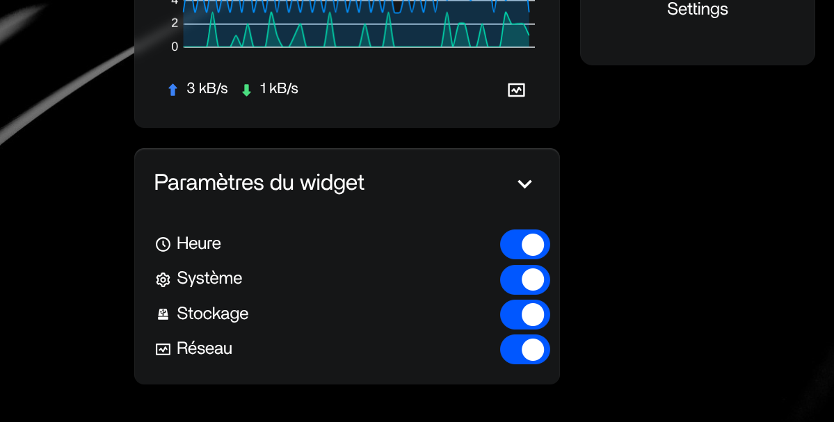 Sur la colonne de gauche différents widgets indiquant