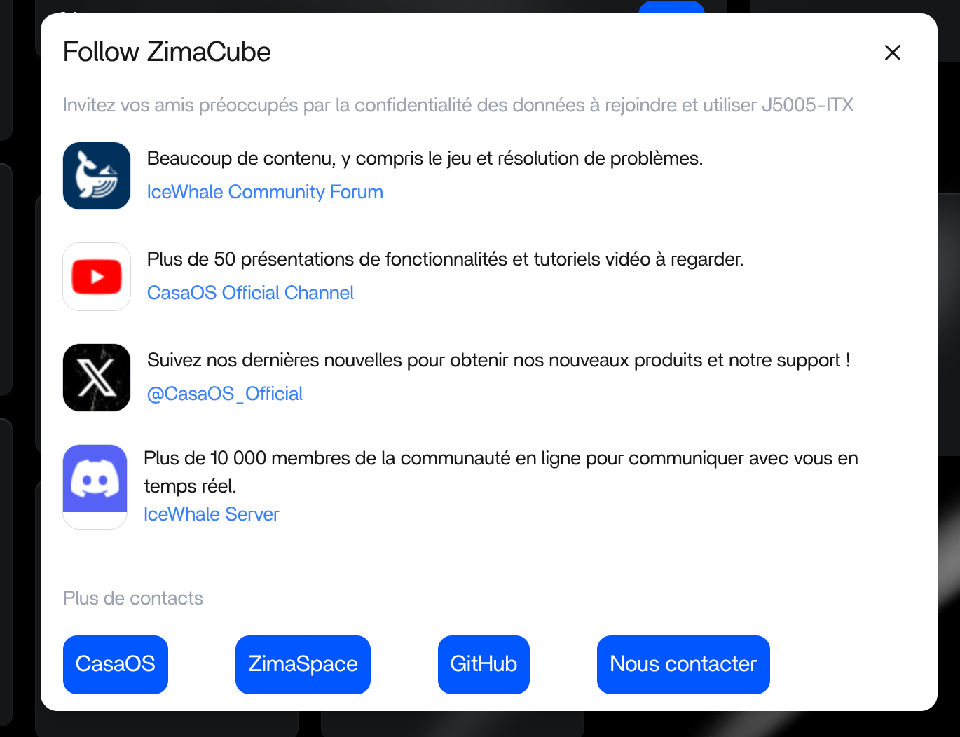 3.7. IceWhale Community est un simple raccourci vers le Forum Officiel de ZimaOS